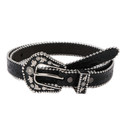 Designer Feminino Menina Preto PU Couro Ocidental Flor Alloy Metal Buckle Studded Rhinestone Durável 2.5CM Largura Cinto Ajustável