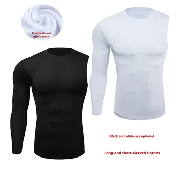 Haut de gymnastique pour hommes à séchage rapide et haute élasticité couche de base de sport basket-ball respirant à manches longues et courtes haut actif confortable